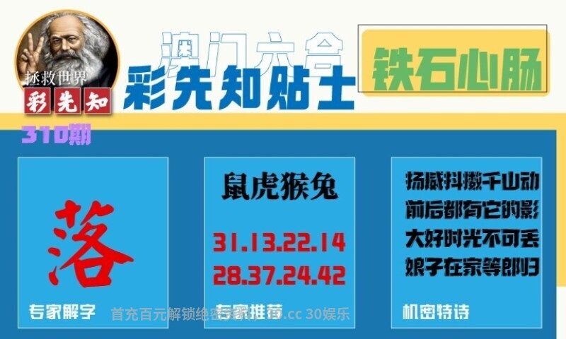 310期:彩先知贴士一字:【落】 诗句:铁石心肠 机密特诗:扬威抖擞千山动,前后都有它的影,大好时光不可丢,娘子在家等郎归 解:扬威抖擞千山动,解山肖:兔虎鼠猪鸡羊猴,娘子在家等郎归,解夫妻肖:马羊 九肖:兔虎鼠猪鸡羊猴马蛇 七肖:兔虎鼠猪鸡羊猴 五肖:兔虎鼠猪鸡 三肖:兔虎鼠 |