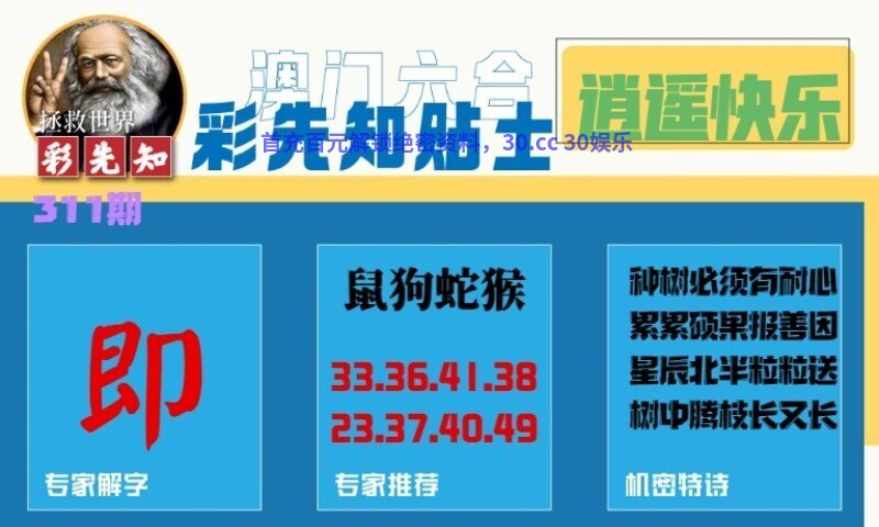 311期:彩先知贴士一字:【即】 诗句:逍遥快乐 机密特诗:种树必须有耐心,累累硕果报善因,星辰北半粒粒送,树中腾枝长又长 解:累累硕果报善因,解秋肖:鸡猴狗,树中腾枝长又长,解木肖:兔虎 九肖:兔虎鸡猴狗蛇羊猪龙 七肖:兔虎鸡猴狗蛇羊 |